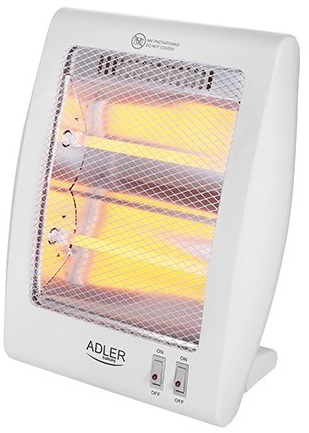 Přenosný křemíkový infra zářič Adler AD 7709 má výkon 800 W, který zajišťují dvě křemenné lampy po 400 W, které nemusí běžet naráz.