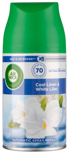 AIR WICK FreshMatic náplň Vůně svěžího prádla 250 ml, pro voňavý a svěží domov. Náplň dodává vůni automaticky až po dobu 70 dnů.