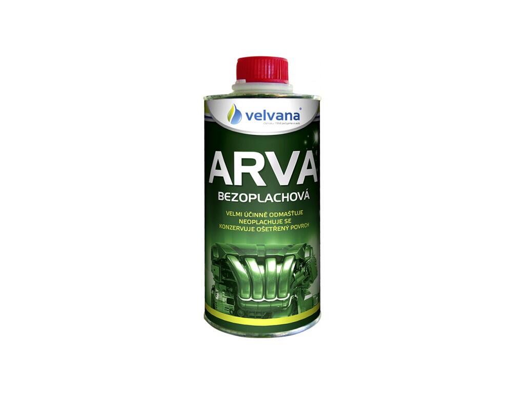 ARVA® bezoplachová odstraňuje nečistoty a ošetřený povrch chrání před korozí. Neobsahuje chlorované uhlovodíky ani aromáty. ARVA® bezoplachová je bezbarvá až nažloutlá kapalina, směs uhlovodíkových rozpouštědel s různými přísadami jako antioxidanty nebo inhibitory koroze. Čisticí prostředek má dobrou odpařivost – velmi dobře schne.Čisticí práce s bezoplachovou Arvou provádíme ponorem nebo nátěrem na ošetřovaný předmět. Doba působení na odmašťovaný předmět je závislá na stupni a druhu znečištění. Po odmaštění provedeme otření ošetřovaného povrchu čistou tkaninou. Přípravek se používá v původním stavu, neředěný. Je vhodný pro použití do mycích stolů a praček pro opakované mytí. Neoplachuje se. Obsahuje inhibitor koroze a antioxidant.