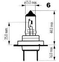 Autožárovka s baňkou z křemičitého skla s UV filtrem zamezujícímu UV záření, homologace pro silniční provoz, typ H7, napětí 12V, výkon 55W.