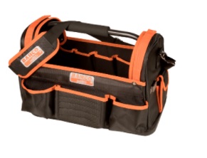 Otevřená brašna na nářadí pro snadný přístup a používání.