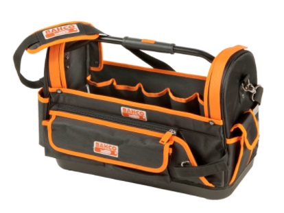 Otevřená brašna na nářadí pro snadný přístup a používání.