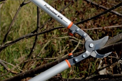 Vinohradnické nůžky speciálního tvaru, rovněž vhodné pro parkové úpravy.