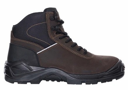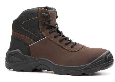 Bezpečnostní kožená kotníková obuv s tužinkou ze sklolaminátu a s kevlarovou stélkou proti propichu, reflexní aplikace na svršku, voděodolná úprava svršku.