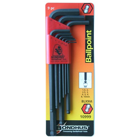 Sada imbusových klíčů s kuličkou BLX9. Klíče jsou vyrobeny z oceli Protanium. Sada je opatřena pouzdrem Bondhex. Pouzdro lze použít i při šroubování ke zvětšení páky.