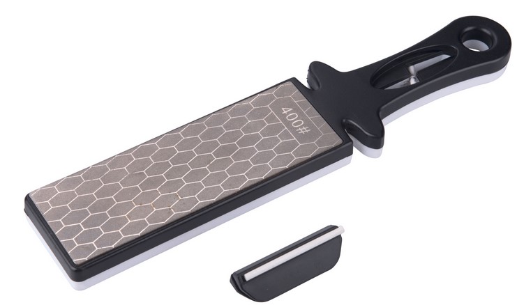 Oboustranný brousek s diamantovým prachem o hrubostech P400/P1000 je doplněn plastovo-keramickým vodičem, který při broušení napomáhá lepšímu udržení konstantního sklonu čepele nože. V rukojeti jsou zabudovány další dva sloty k broušení "nahrubo" pomocí dvojice karbidových plátků a jemnému finálnímu naostření pomocí keramických plátků.