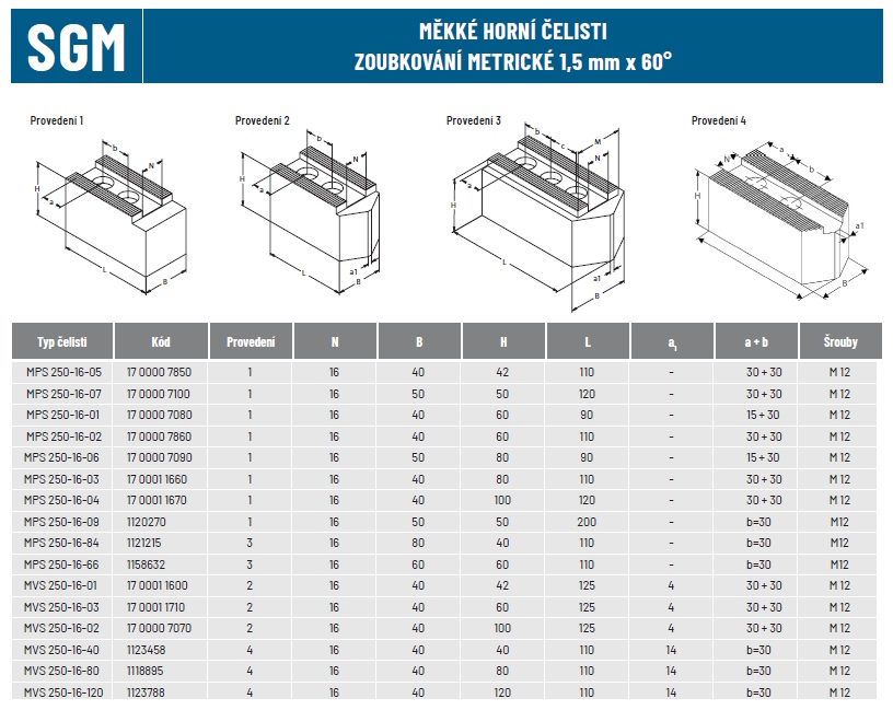 Čelist horní měkká MPS-250-16-08; 50x40x150; 1,5x60° - sada (3ks)