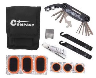Praktická multifunkční souprava cyklistického nářadí a pomůcek pro opravu duší v praktické, uzavíratelné brašně. Velikost brašny 9 x 9 x 4,5 cm.