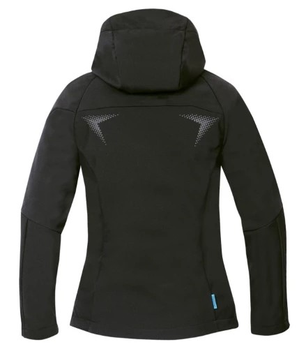 Dámská softshellová bunda s kapucí z elastického materiálu ElasticTech®Flexi s membránou je voděodolná, větruvzdorná a zároveň prodyšná. Obvod odepínatelné kapuce i spodní okraj bundy lze regulovat pomocí stoperů. Vnitřní část tvoří příjemný fleece. Bunda s raglánovými rukávy má anatomicky tvarovaný funkční střih SLIM FIT, průběžný zip s krytkou brady, 1 zipovou náprsní kapsu a 1 zipovou kapsu na levém rukávu, 2 zipové boční kapsy. Pro bezpečnost pohybu je vybavena reflexními prvky. Díky modernímu designu má bunda všestranné využití v outdooru, sportu i volnočasových aktivitách.