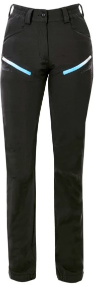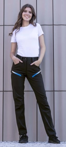 Dámské softshellové kalhoty mají přiléhavý střih SLIM FIT. Čtyřsměrně elastický odlehčený softshell ElasticTech®Flexi s membránou je vhodný i pro náročné aktivity, výborně chrání před větrem, je voděodolný, rychle schne a udržuje optimální tělesnou teplotu. Ventilační zipy se síťovinou na vnější straně stehen. Zadní díl člení sedlo, na předním dílu 2 zipové kapsy, pružný, tvarovaný obvod pasu zvyšuje komfort při nošení. Funkční tvarování nohavic, zúžený střih, spodní lem nohavic s možností nastavení obvodu pomocí druků, vnitřní háček s gumou pro upevnění nohavic k obuvi. Design dokreslují 3D reflexní potisky.
