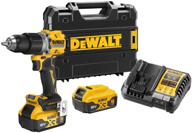Aku příklepová vrtačka 18V 2x5,0Ah DeWALT DCD805P2T s celokovovou dvourychlostní převodovkou a plynulou regulací otáček.
