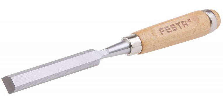 Dláto CrV s ergonomickou rukojetí z bukového dřeva, úderová plocha s kovovým kroužkem, která zvyšuje její pevnost.