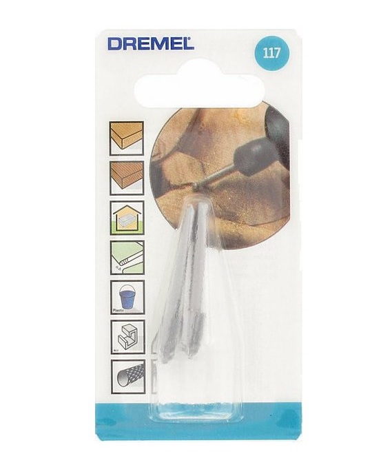 Vysokorychlostní frézy DREMEL 117 lze používat k obrážení, tvarování, zahlubování, drážkování, rýhování, řezání vnitřních závitů do měkkých kovů, plastu a dřeva.