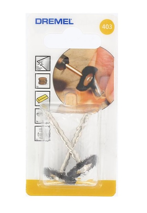 Štětinové kartáče DREMEL 403 se používají na lehké odjehlování, čištění, leštění stříbra, klenotů a dalších drahých kovů. Mohou se používat s lešticí pastou DREMEL 421.