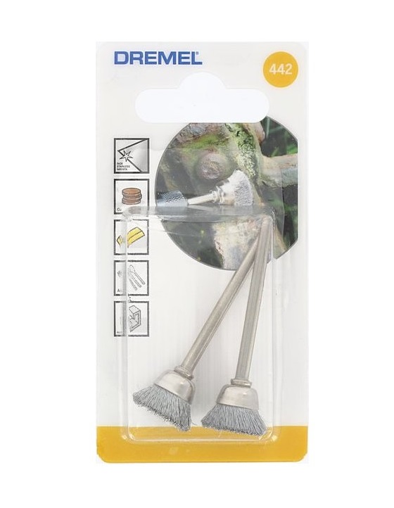 Univerzální kartáčky DREMEL 442 na odstraňování rezu, leštění kovových povrchů, odjehlování a zahlazování přechodů na spojovaných místech, nebo na čištění elektrických součástek