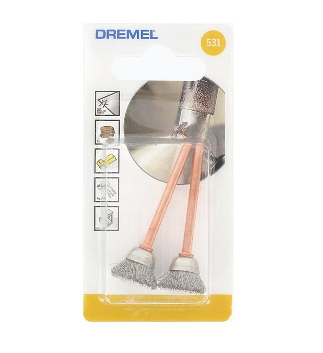 Drátěné kartáčky DREMEL 531 z nerezové oceli nezpůsobují „následné rezivění“ materiálů odolných proti korozi, jako jsou cín, hliník a nerezová ocel.