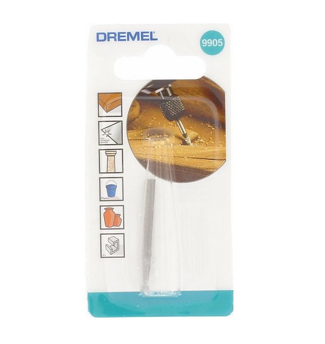 Řezné nástroje z karbid wolframu DREMEL 9905 používají se pro obrábění, hlazení a hrubování materiálu. Používají se na kalenou ocel, nerez ocel, šedou litinu, neželezné kovy, vypálenou keramiku, plasty, tvrdé dřevo a jiné tvrdé materiály.