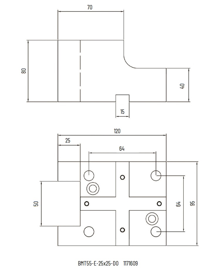 Pevný držák BMT55; pro nože 25x25; radiální; vnější chlazení