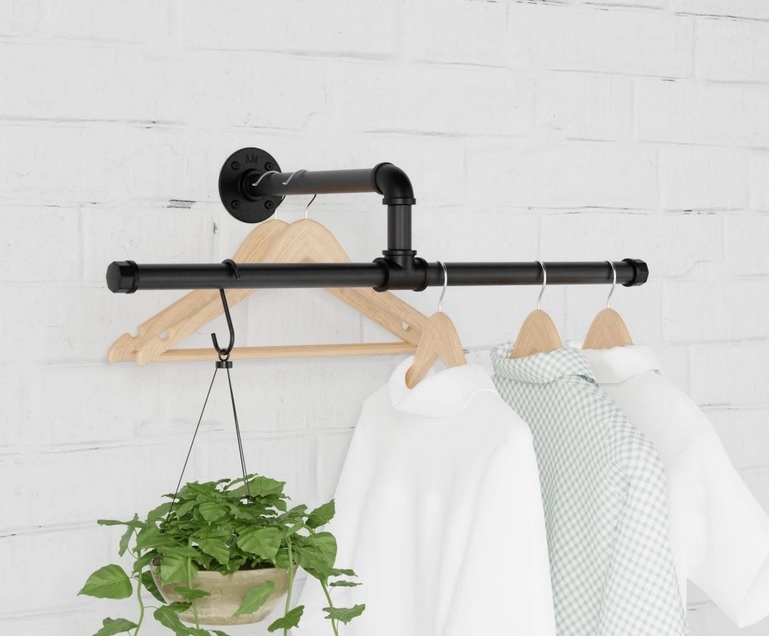 Součástí sady je trubková konstrukce, díky jejíž konstrukci vzniká praktický pomocník pro zavěšení oblečení na ramínka. Díky industriálnímu vzhledu bude originálním prvkem prostorů jako jsou šatny, ložnice, vstupní haly nebo koupelny.