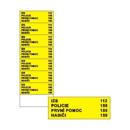 Důležitá telefonní čísla k nalepení na telefon, samolepka aršík 8ks