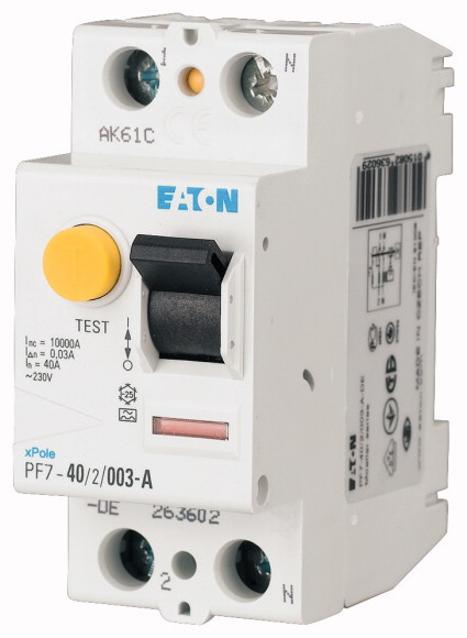 Jmenovitý pracovní proud In: 40 A. Jmenovitá odolnost proti zkratu Icn: 10 kA. Jmenovitý reziduální proud I?N: 0,03 A, Typ AC, citlivý na střídavý proud, podmíněná odolnost proti rázovému proudu 250 A. Spínací přístroje pro bytovou výstavbu a účelové stavby. Parametry Značka: Eaton Počet pólů: 4 Dimenzované napětí: 400 V Dimenzovaný proud: 40 A