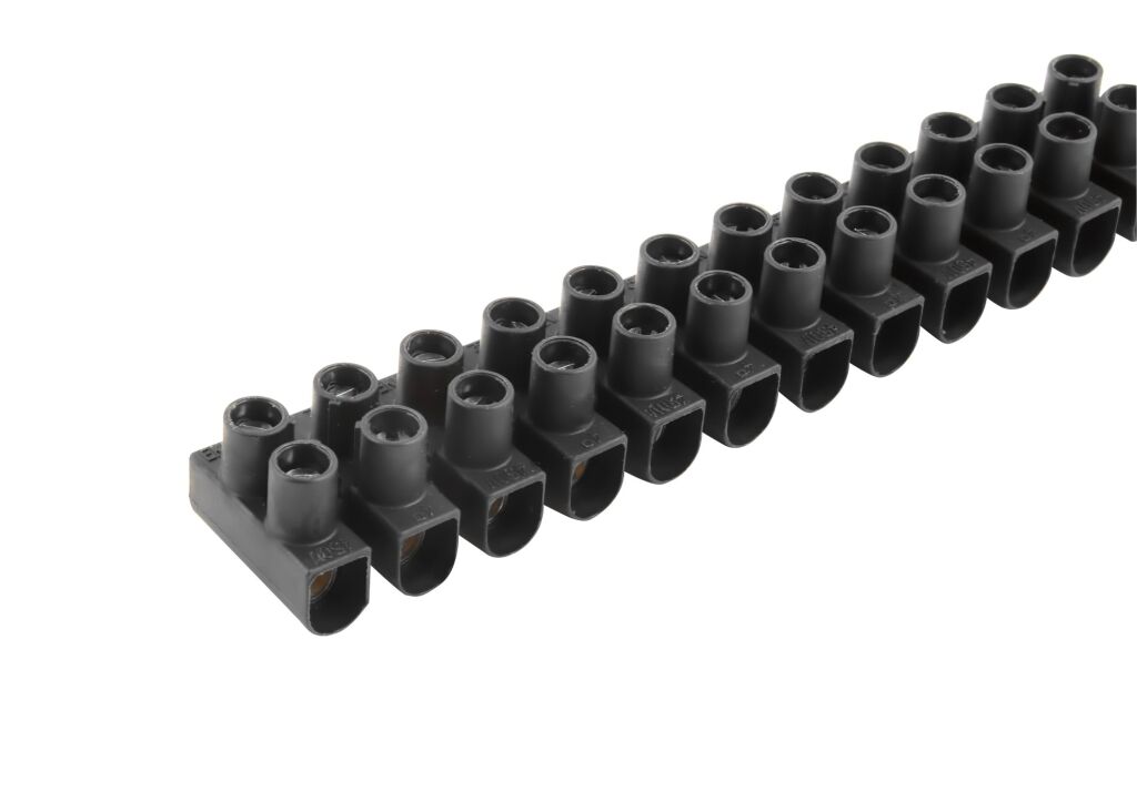 Svorkovnice instalační lámací EKL 0 S - 12 pólová, průřez vodiče 1-4mm2, barva černá, povrchově upravená ocel, napětí 450V, jmenovitý proud 32A, rozměr 94,9x13x16,6mm Svorkovnice instalační - lámací. Ve šroubové instalační svorkovnici lze propojit vodiče různých průřezů (od 1 mm2 až po 35 mm2) a to buďto s pevným jádrem a nebo i laněné vodiče s dutinkou. Pod jedním šroubem lze upevnit jeden vodič. Vyrábí se v 6ti velikostech plastových (polypropylenových) pouzder s ocelovou svorkou s povrchovou úpravou. Max. zatížitelnost se liší dle typu od 24 A až po 125 A. Jmenovité napětí 450 V až 750 V. Instalační svorkovnice lze jednoduše lámat na požadovaný počet pólů pootočením.