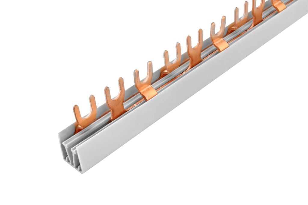 Propojovací fázové lišty umožňují propojení modulových přístrojů (např. jističů, chráničů, modulových vypínačů apod.) jednoduchým a profesionálním způsobem. Standardní délky lišt jsou 210 mm (propojení 12ti modulů) nebo 1 metr. Tyto standardní rozměry lze libovolně krátit (konce lišt doporučujeme osadit plastovými koncovkami).