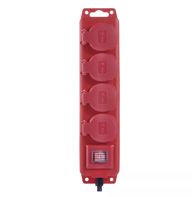 Neoprenový kabel - je určen pro použití na staveništích a pro trvalé použití ve venkovních prostorách,oleji odolný. Krytí IP44 - vhodné pro venkovní použití. Podsvícený 2pólový vypínač s krytkou. Možnost uchycení na zeď pomocí montážních otvorů, které jsou umístěny na těle zásuvkové lišty.