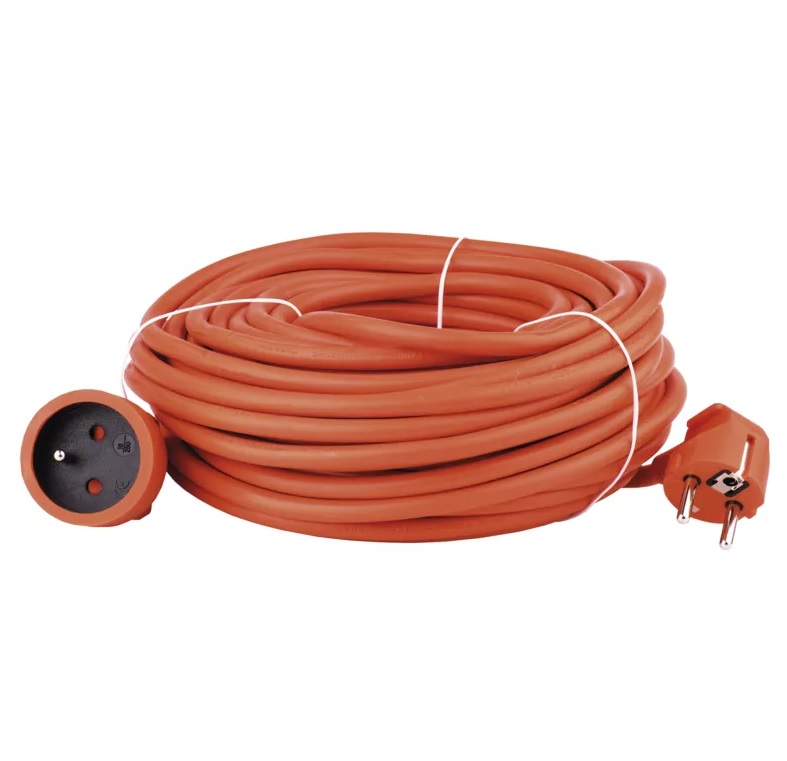 Oranžový prodlužovací přívod s jednou zásuvkou - spojka, délkou 20 m a průřezem vodiče 1,5 mm2. Vhodný pro maximální zátěž 16 A max. Prodlužovací přívod 20 m na 230 V~ slouží k prodloužení elektrické energie tam, kam pevná zásuvka nedosáhne.