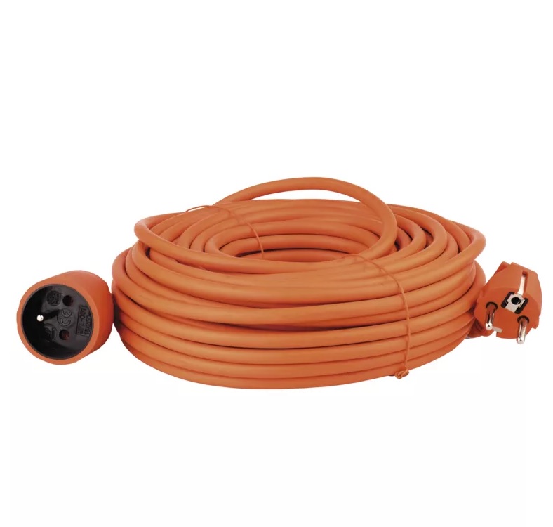 Oranžový prodlužovací přívod s jednou zásuvkou - spojka, délkou 25 m a průřezem vodiče 1,5 mm2. Vhodný pro maximální zátěž 16 A max. Prodlužovací přívod 25 m na 230 V~ slouží k prodloužení elektrické energie tam, kam pevná zásuvka nedosáhne.