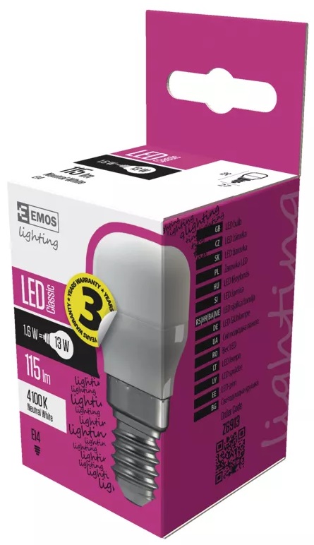 Žárovka do lednice příkon: 1,6 W patice (uchycení žárovky): E14 světelný tok: 115 lm rozměr: 27 × 58 mm napětí: 230 V teplota: neuvádí se prodejní obal: 1 ks, krabice energetická třída: A++ záruční doba: 3 roky
