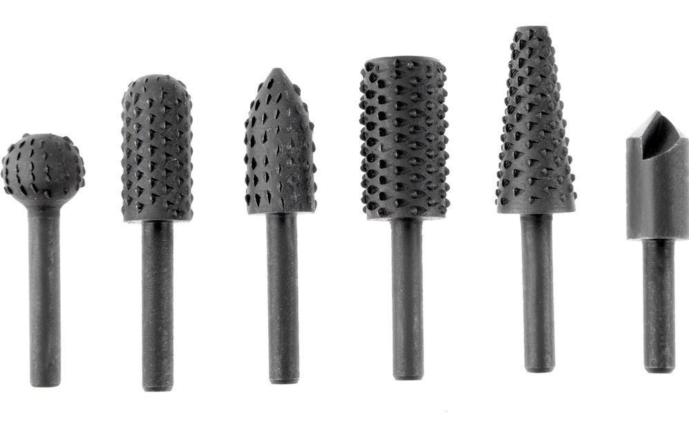 Sada nástrojů s dříkem o průměru 6 mm, která je určena pro práci s vrtačkou pro opracování dřeva, plastu nebo pryže.