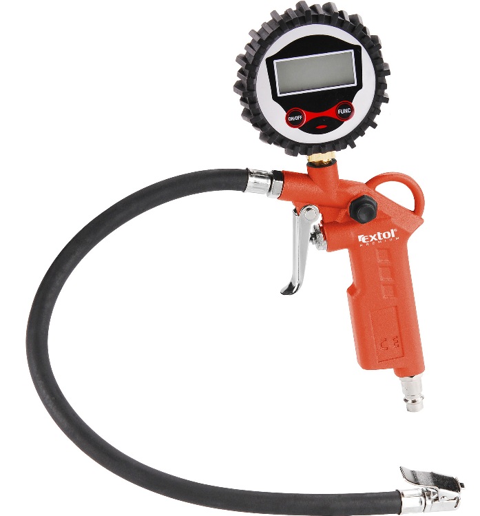 Plnič pneumatik s digitálním manometrem je určen k snadnému plnění stlačeným vzduchem, např. pneumatik automobilů, kol atd.