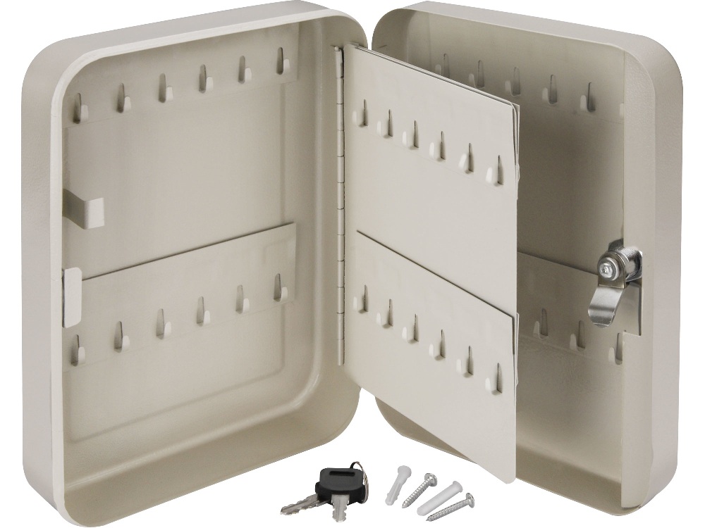 Schránka na klíče 250x180x80mm, pro 48 klíčů je větší ocelová, uzamykatelná skříňka určená k přehlednému uspořádání a bezpečnému uložení klíčů.