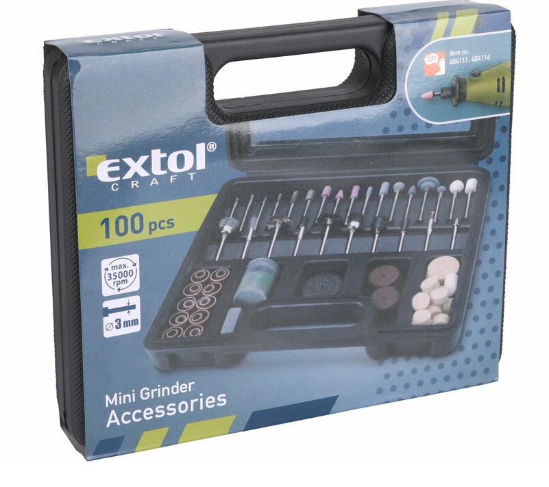 Všechny nástavce mají průměr dříku 3,2 mm a jsou dodávány v praktickém plastovém kufříku.