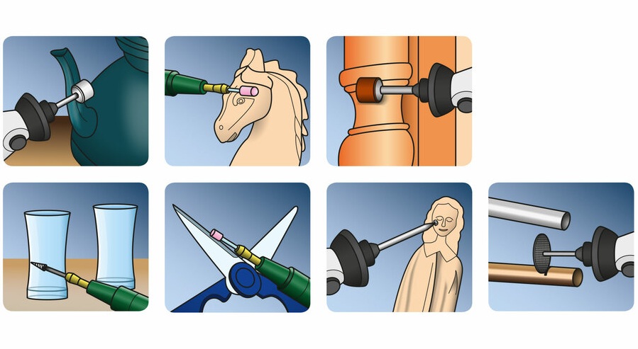 Sada je navržena tak, aby poskytovala univerzální řešení pro širokou škálu úkolů, které lze provádět pomocí přímé brusky.