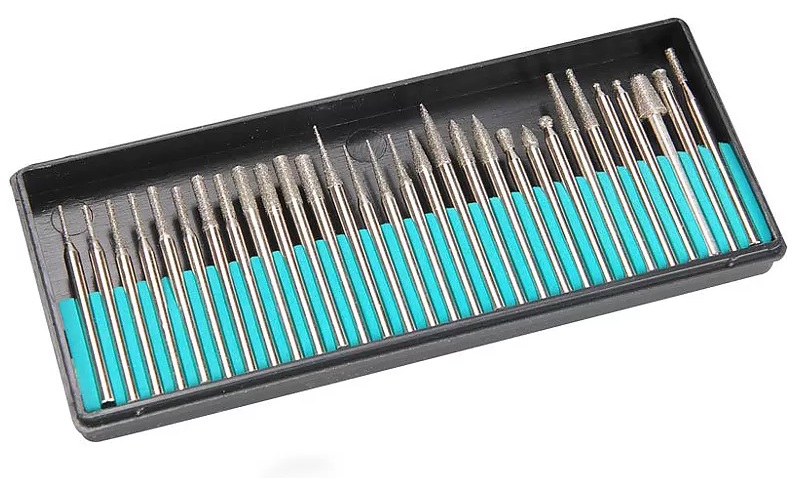30 ks brousících tělísek různých tvarů a průměrů pro přímou brusku s vrstvou diamantového prachu, použití pro přesnou a jemnou práci na tvrdých materiálech, jako je sklo, keramika, porcelán, ocel atd.