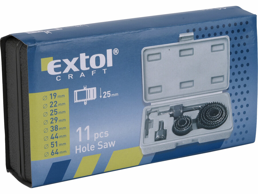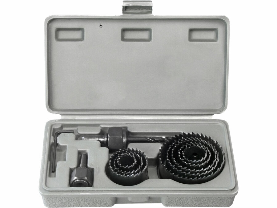 Vrtáky vykružovací korunkové, 8 průměrů (pr.19-64 mm). Do dřeva, sádrokartonu, překližky, apod.