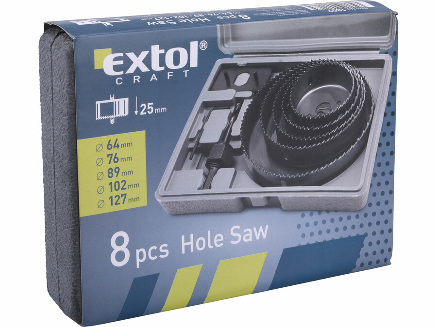 Vrtáky vykružovací korunkové, 5 průměrů (pr. 64-127 mm). Do dřeva, sádrokartonu, překližky, apod.