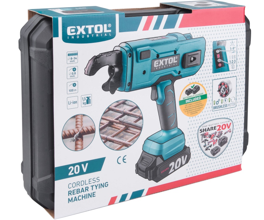Aku vazač betonářské výztuže Extol® Industrial je moderní nástroj pro rychlé a přesné vázání ocelových tyčí a armovacích drátů při přípravě betonových konstrukcí.