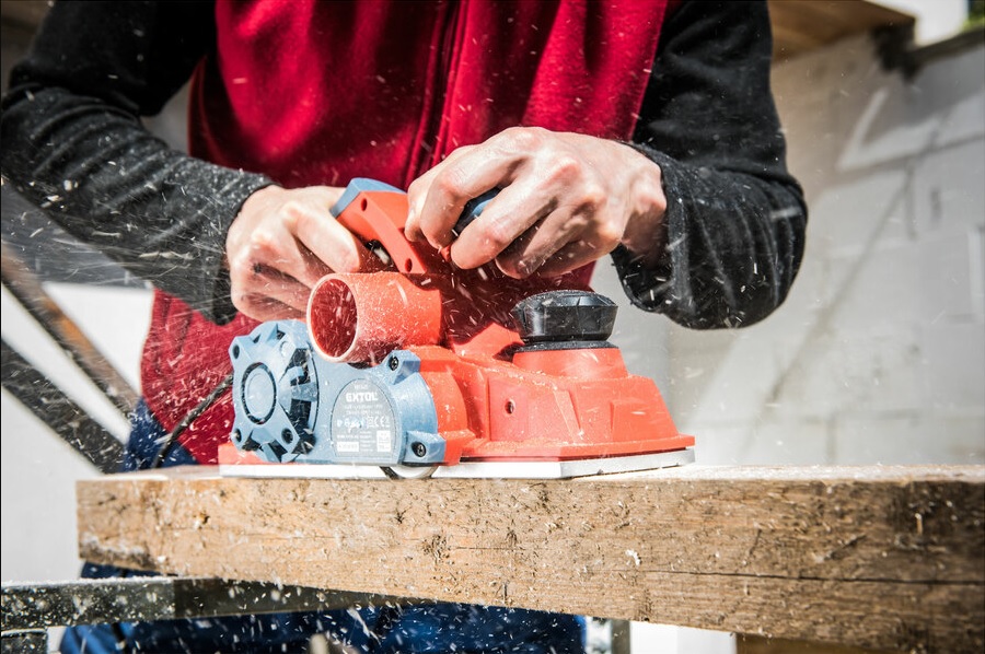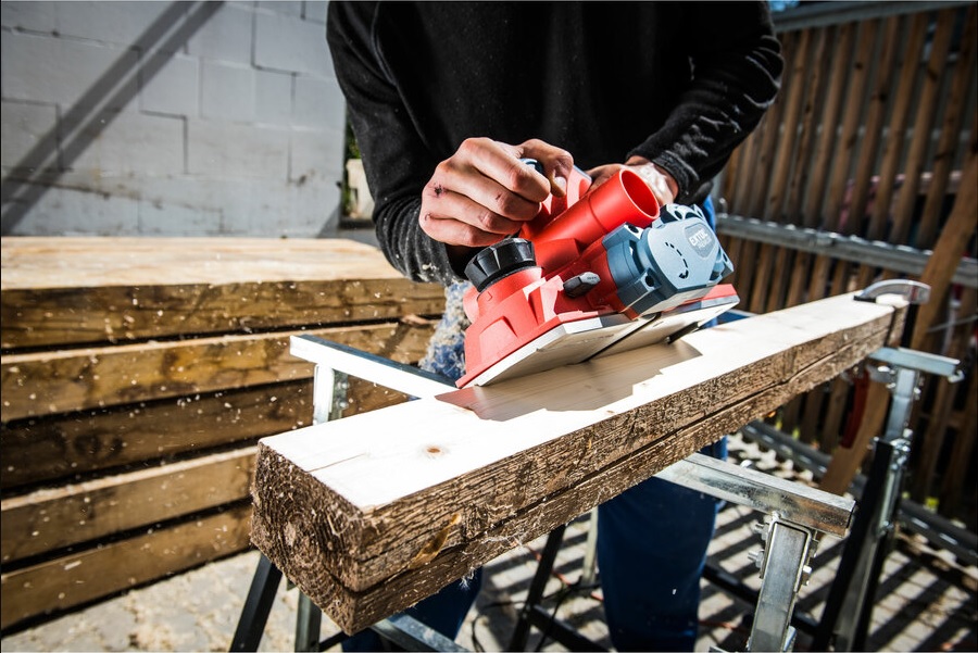 Velmi silný hoblík s hoblovací šířkou 110 mm je určen k hoblování, srážení a drážkování dřeva, např. trámů a prken.