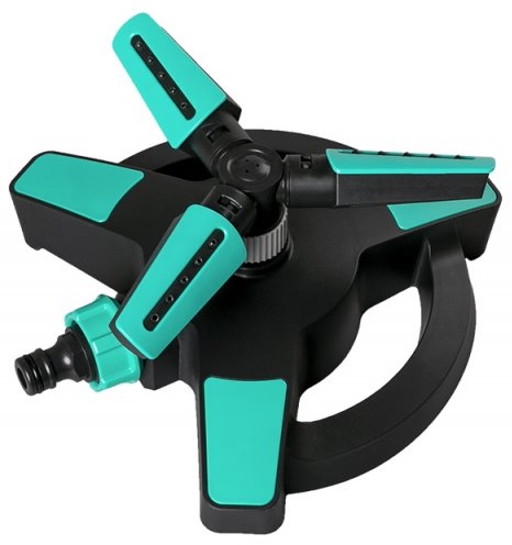 Speciální konstrukce ramen zavlažovače umožňuje otáčením změnit úhel rozstřiku.