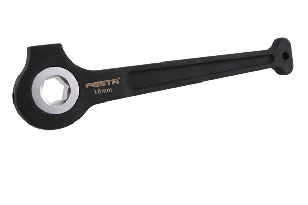 Lešenářská ráčna FESTA 18 mm a 19 mm je klíč - ráčna k trubkovému lešení. Tradiční lešenářská ráčna s vnitřní rohatkou, která obsahuje jen 6 velkých zubů. Díky tomu je mechanismus velmi odolný stejně, jako celá ráčna, kterou často používají i jako kladivo. Hmotnost 0,840 kg.