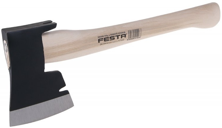 Tesařská sekera 700g FESTA s ergonomicky tvarovanou dřevěnou rukojetí. Tyto sekery mají rovné, dlouhé a tenké ostří, čímž vzniká rovnoměrná sečná plocha. V hlavě sekery je vykován oblouk, díky kterému se dá sekera držet bezprostředně nad ostřím, čímž se zvyšuje stabilita a přesnost.