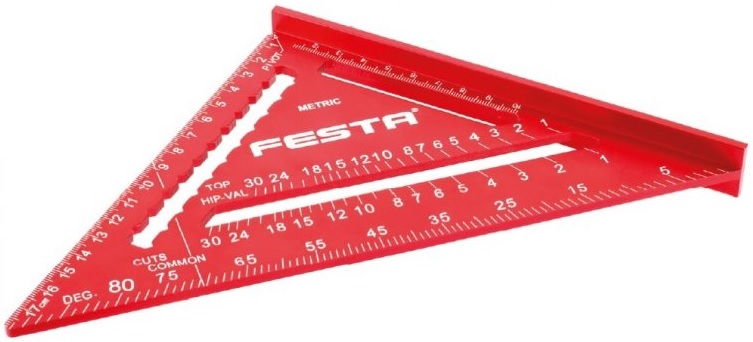 Stupnice a speciální výřezy, naznačené úhly pro široký rozsah použití, zaměření, značení a práce se dřevem, kovy, plasty apod.