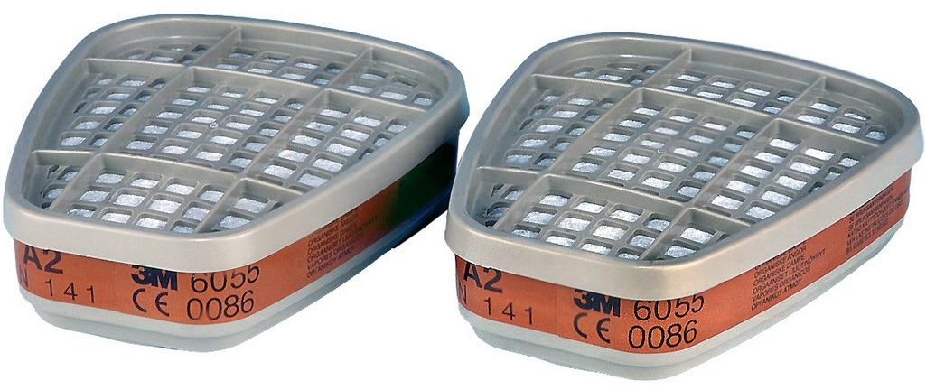 Filtr třídy A2, ochrana proti organickým plynům a výparům.