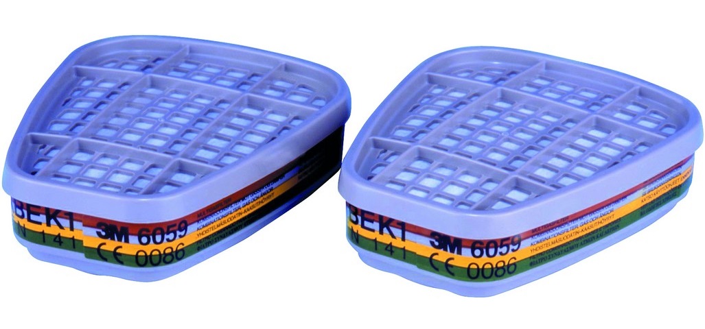 Filtr třídy ABEK1, ochrana proti organickým, anorganickým a kyselým plynům, čpavku a derivátům.