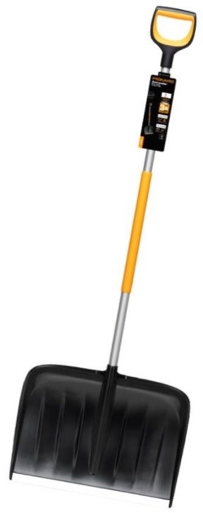 Lopata na sníh má ergonomicky tvarovanou násadu a odolnou rukojeť ve tvaru písmene T.