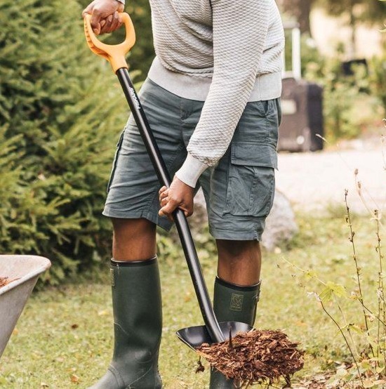 Pevná široká čepel je ideální pro efektivní přemisťování hlíny, písku, štěrku a dalších objemných zahradních materiálů.