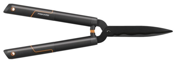 Nůžky na živý plot Fiskars SingleStep mají vlnité a jsou vhodné pro zastřihávání živých plotů a křovin.